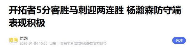 进入 2026 年 1 月,杨瀚森的突破势头更猛了。