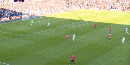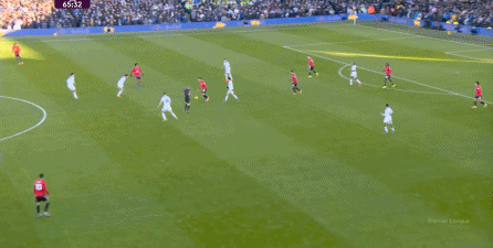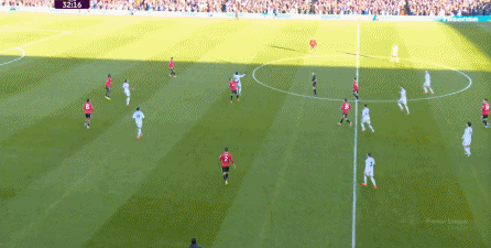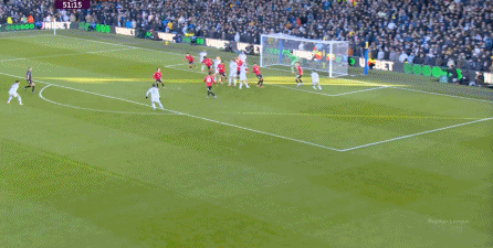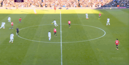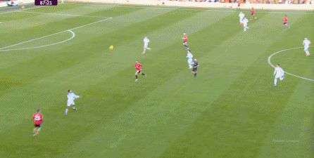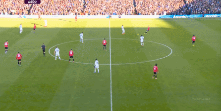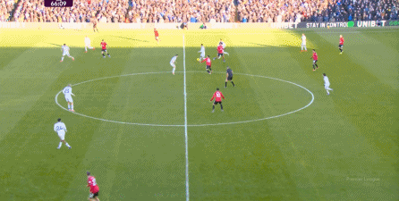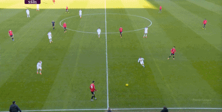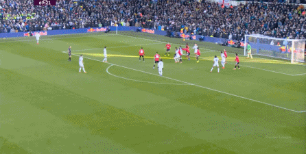 利兹联也可以抓住曼联经典的战术问题——两线之间的空当,然后制造出他们全场运动战环节的最好一次进攻: