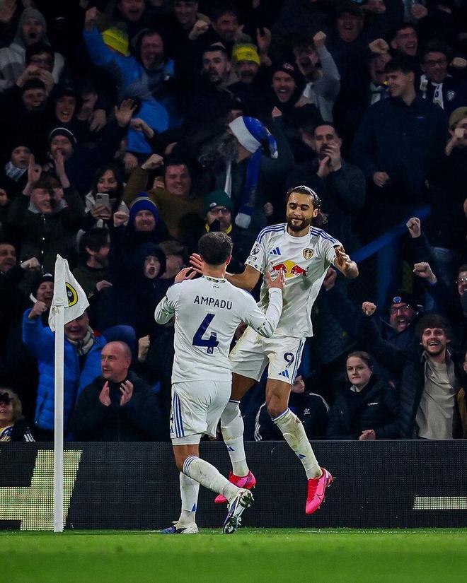 然而,在赛季初期,这种引援策略所暗示的直接打法并未明显体现。在前12场比赛中,利兹联的长传比例仅为11.5%,在英超排名第11位,在同期所有升班马中也是最低的。当然,球队也偶有尝试长传,每当此时,夏季重磅引援之一——多米尼克·卡勒维特-列文的价值便开始显现。这位身高1米87的中锋是顶级的支点,直接将球传向他能让他更多地参与比赛。只要利兹联的球员能及时靠近他,他就能出色地将球做给队友。